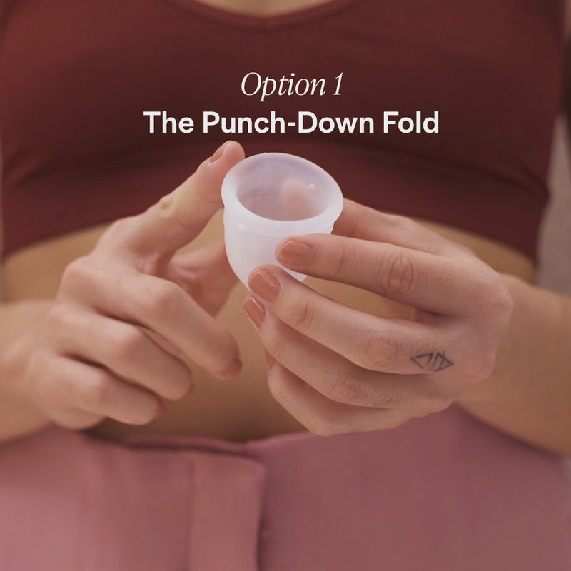 Punch-Down Fold: Push one side of the rim down towards the base to create a narrow insertion point.The soft cup unfolds to form a light suction seal, keeping it safely in place.